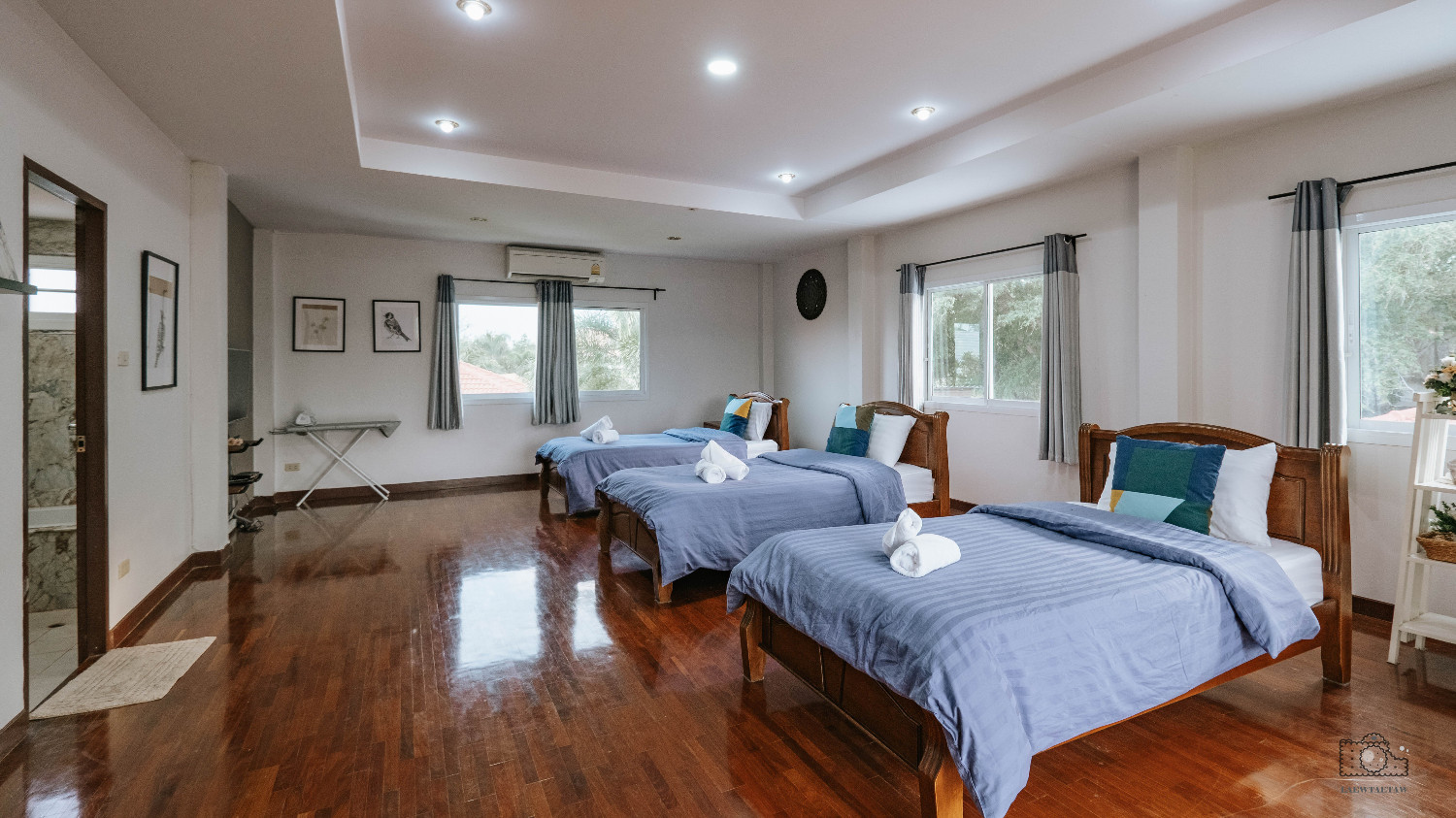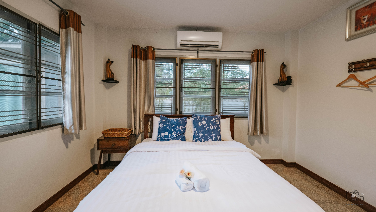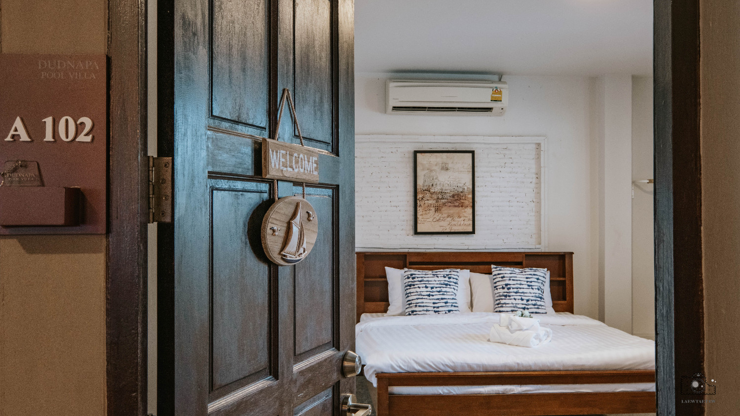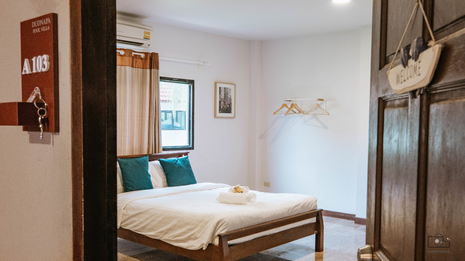 ห้อง A103 ตำแหน่งห้องนี้มองเห็นวิวสวนของหลังบ้าน ภายในห้องพักมีเตียงขนาด 5 ฟุต ภายในห้องมีโซฟา แอร์ ทีวี เป็นต้น