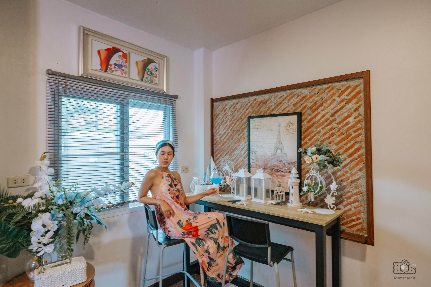 อีกหนึ่งมุมน่ารัก ๆ ของบ้าน มุมเคาเตอร์บาร์เล็ก ๆ ที่ประดับตกแต่งสวยงาม จะมานั่งจิบเครื่องดื่มเย็น ๆ หรือเป็นอีกหนึ่งมุมถ่ายภาพก็ดีเช่นกัน
