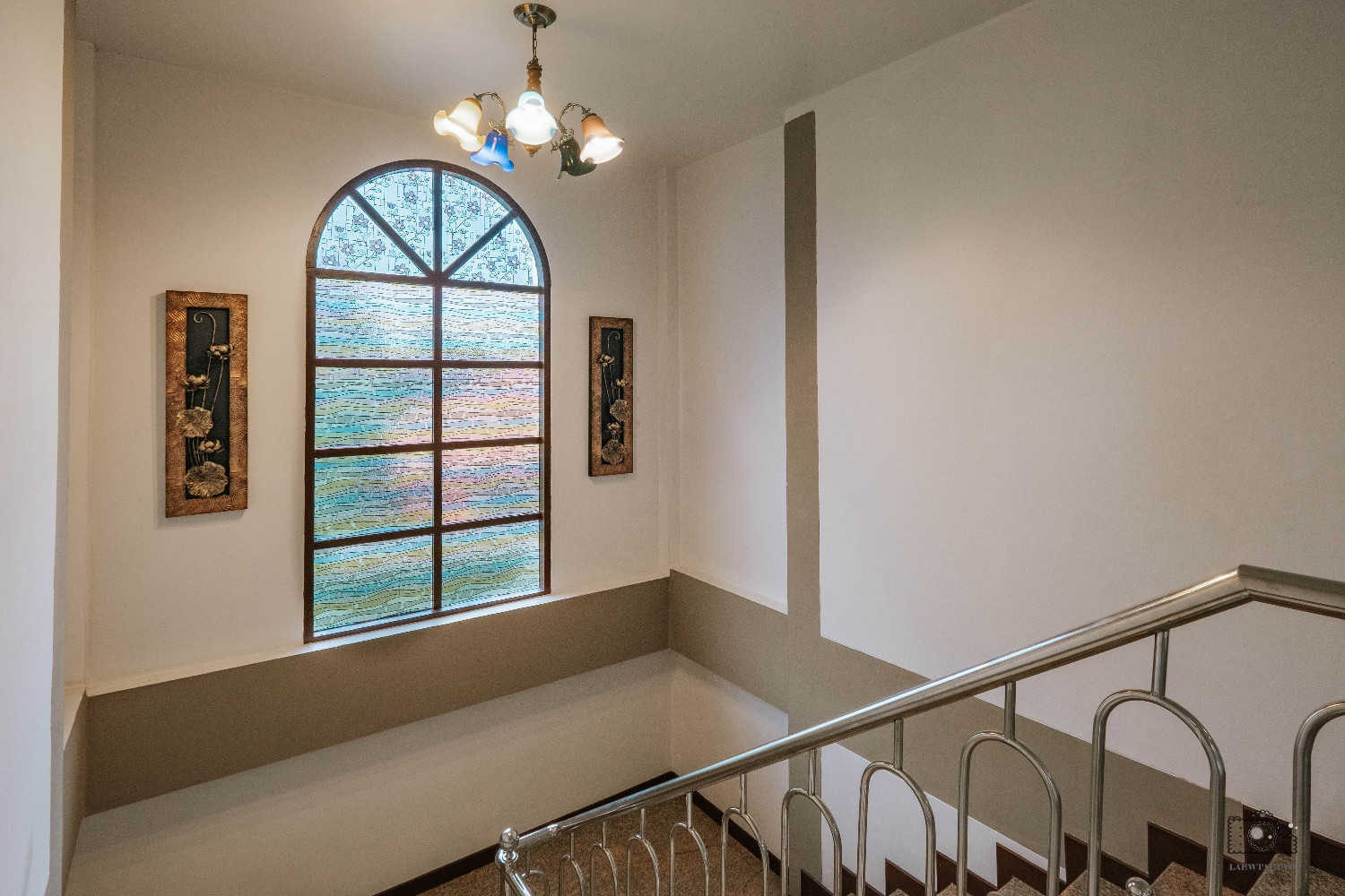 ขึ้นมากันที่ชั้น 2 ของบ้าน บริเวณทางขึ้นมีบานกระจกใหญ่สะดุดตารับแสงจากภายนอกทำให้ภายในบ้านได้รับแสงจากภายนอกด้วย