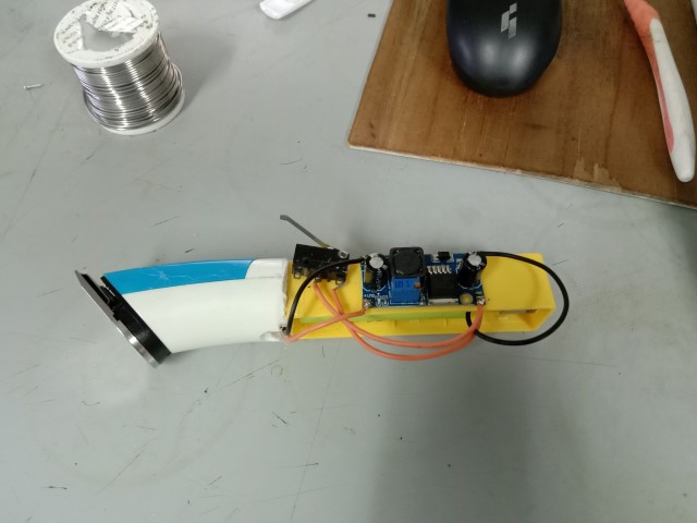 แกะไปรื้อมา สุดท้ายมาลงเอยที่ หา powerbank มาต่อ แล้วก็ใส่ DC stepup-down เข้าไป ปรับแรงดันให้ได้ซัก 2 v กว่าๆ