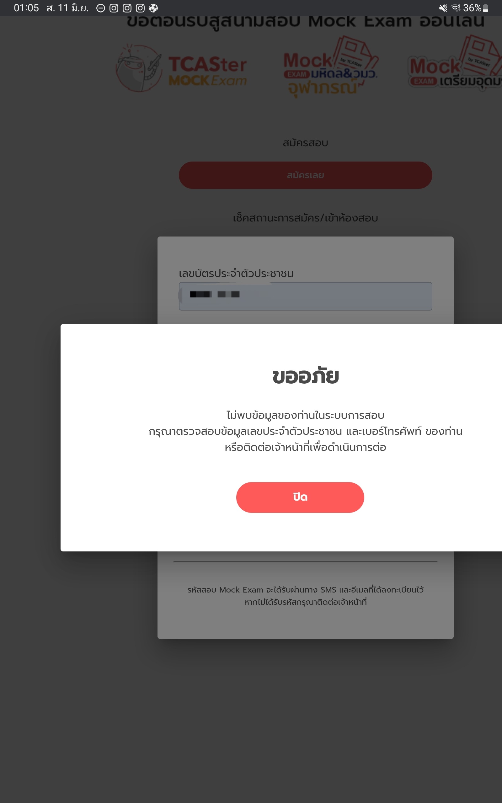 สวัสดีค่ะเขาสมัครTcaster mock examแล้วมันไม่มีรหัสสอบไม่อัพเดตอะไรเลยค่ะ