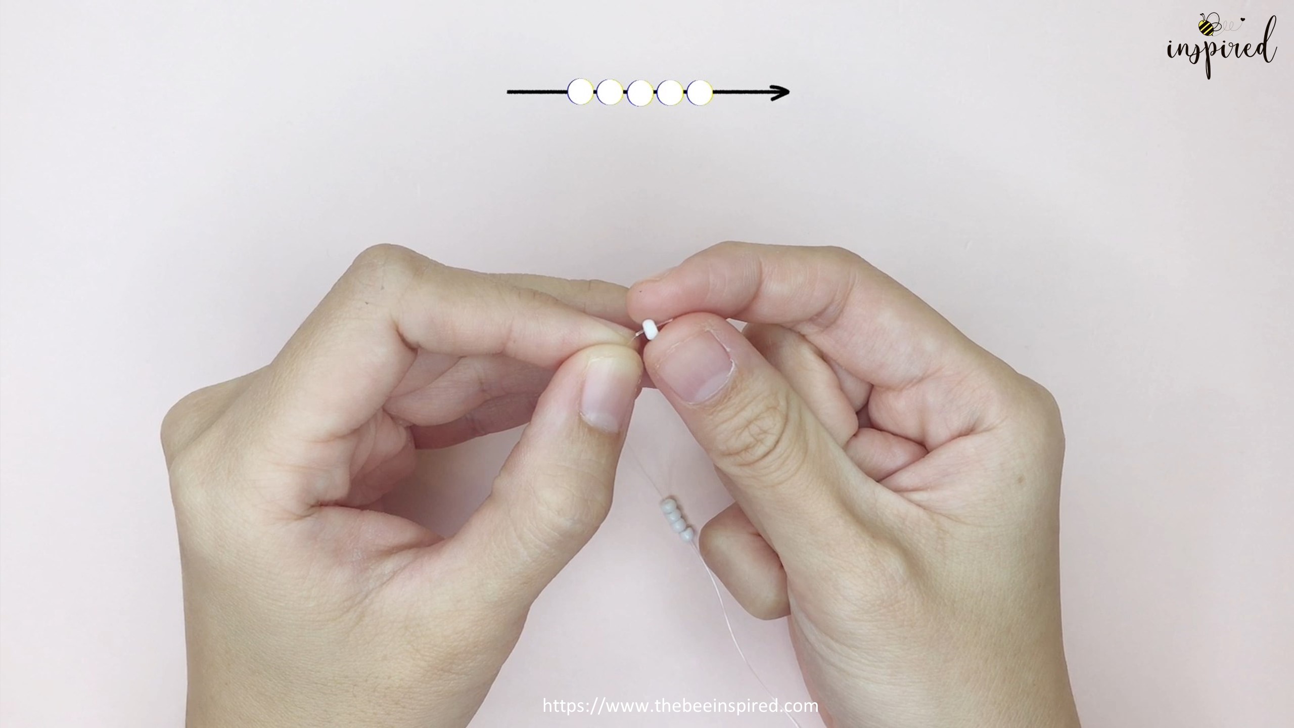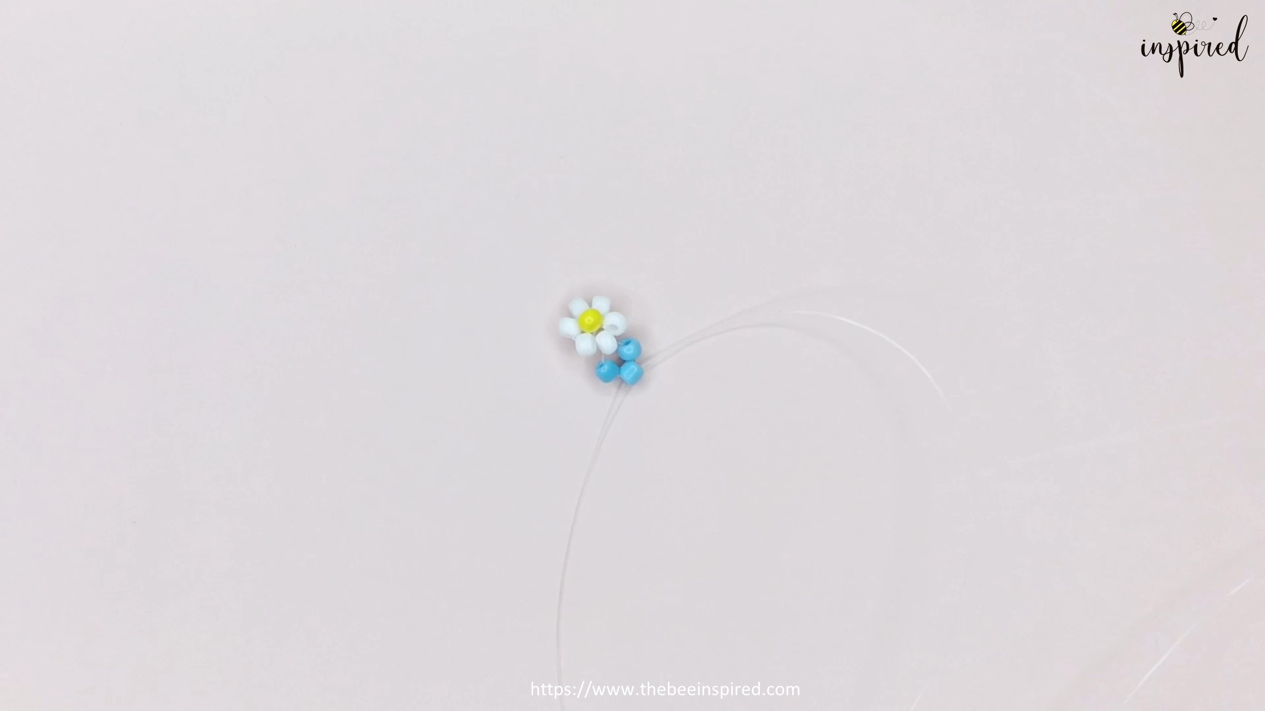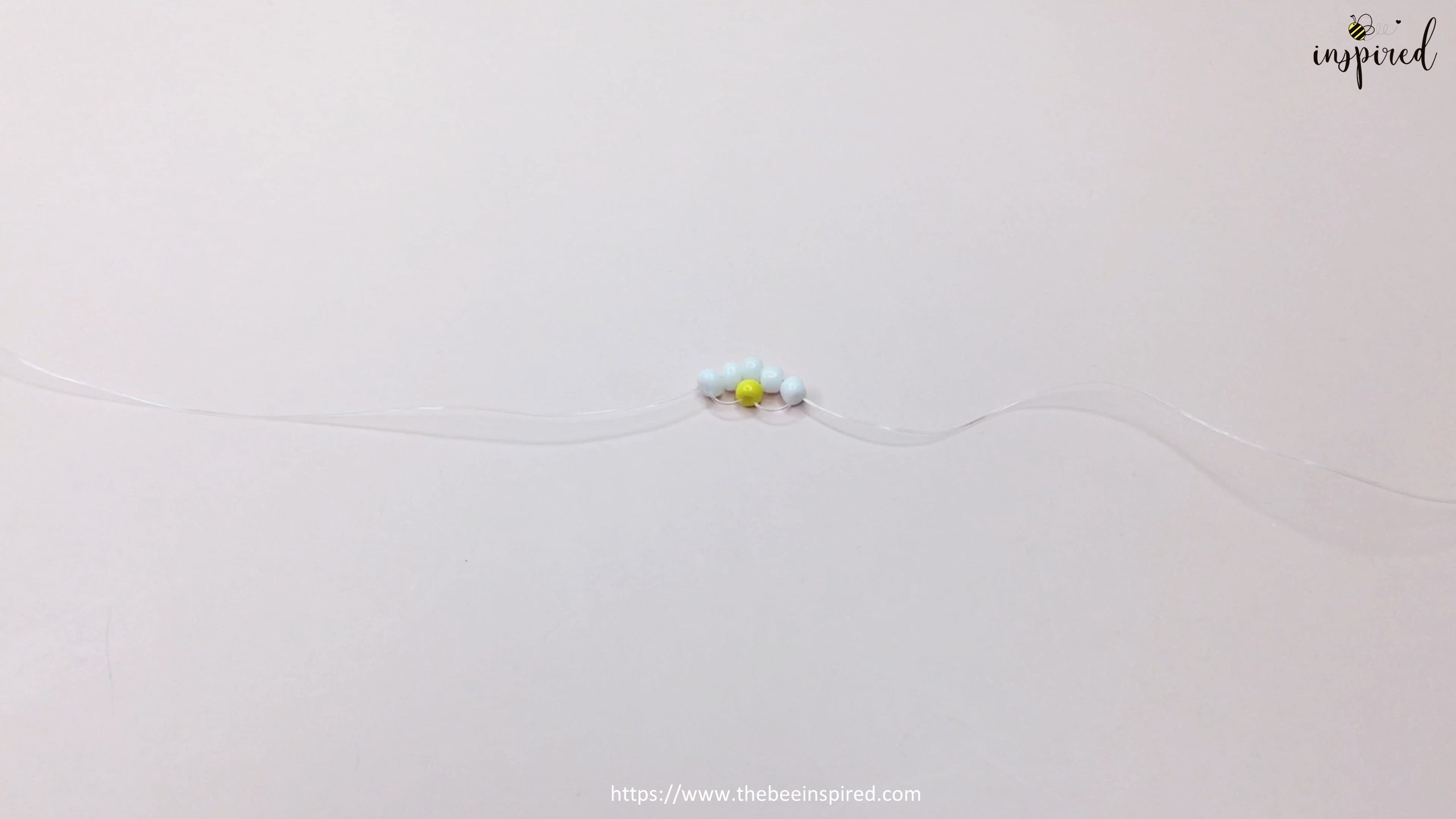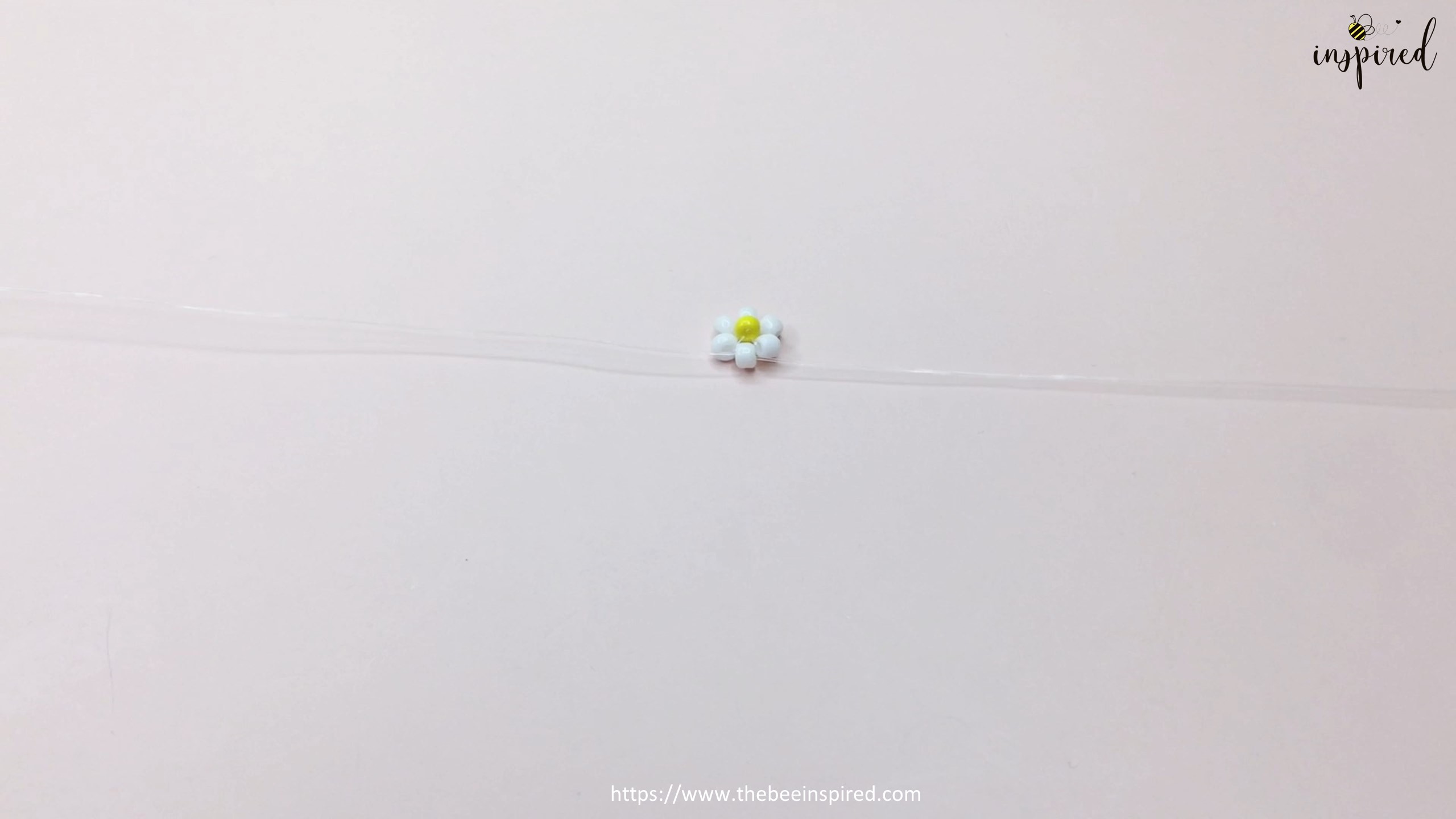 1. ร้อยน้องเดซี่ด้วยลูกปัดสีขาวจำนวน 5 เม็ด