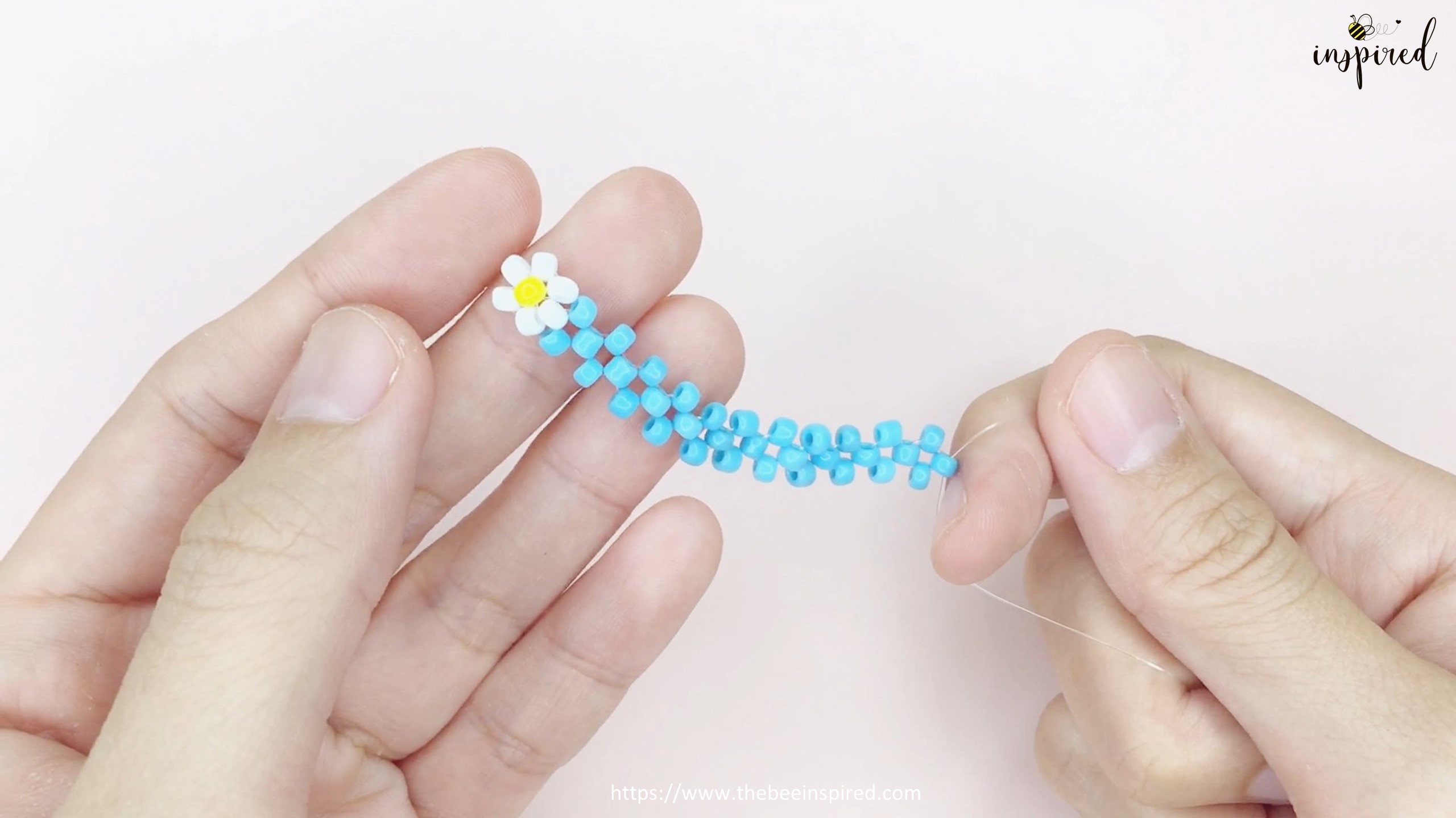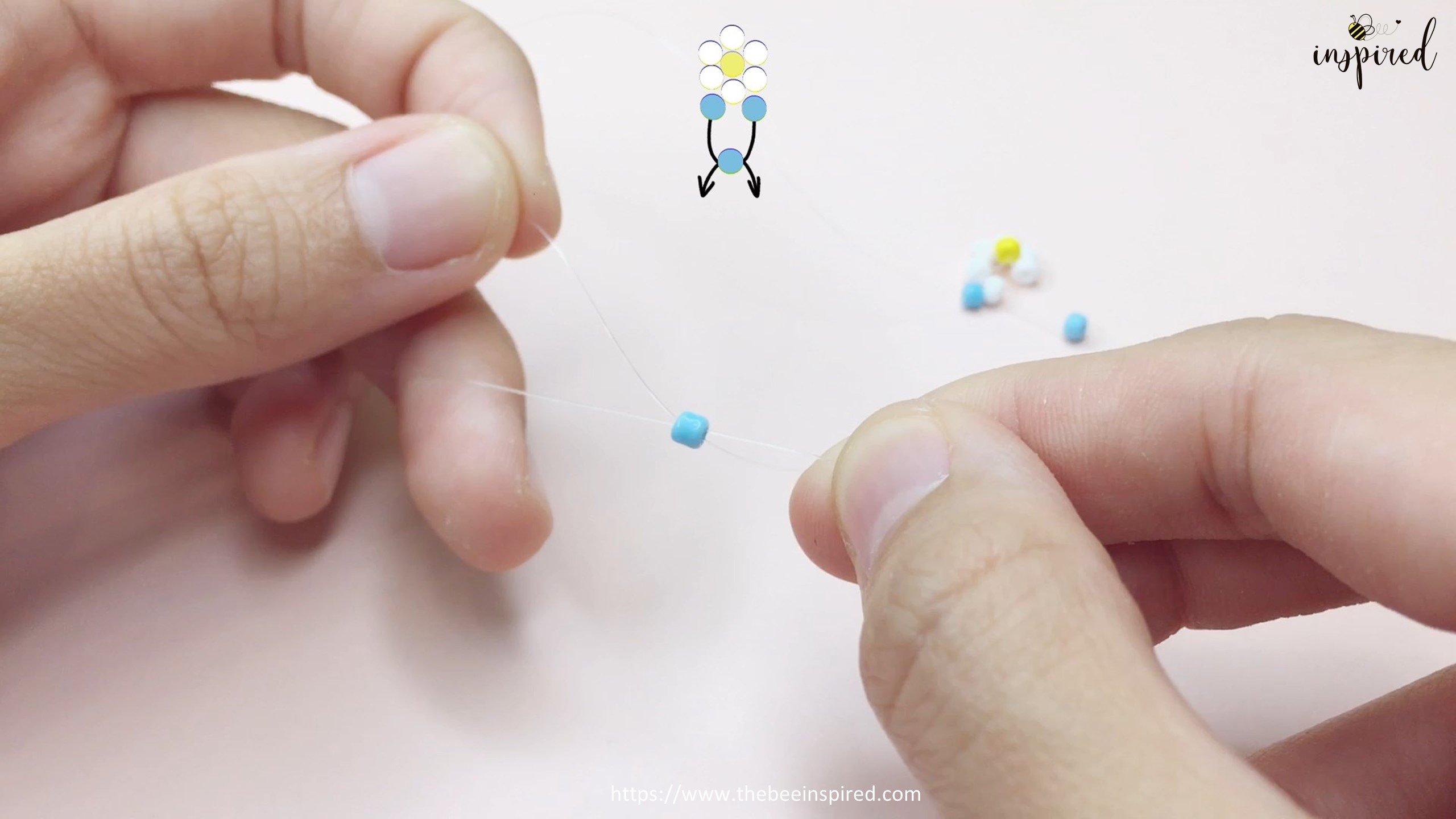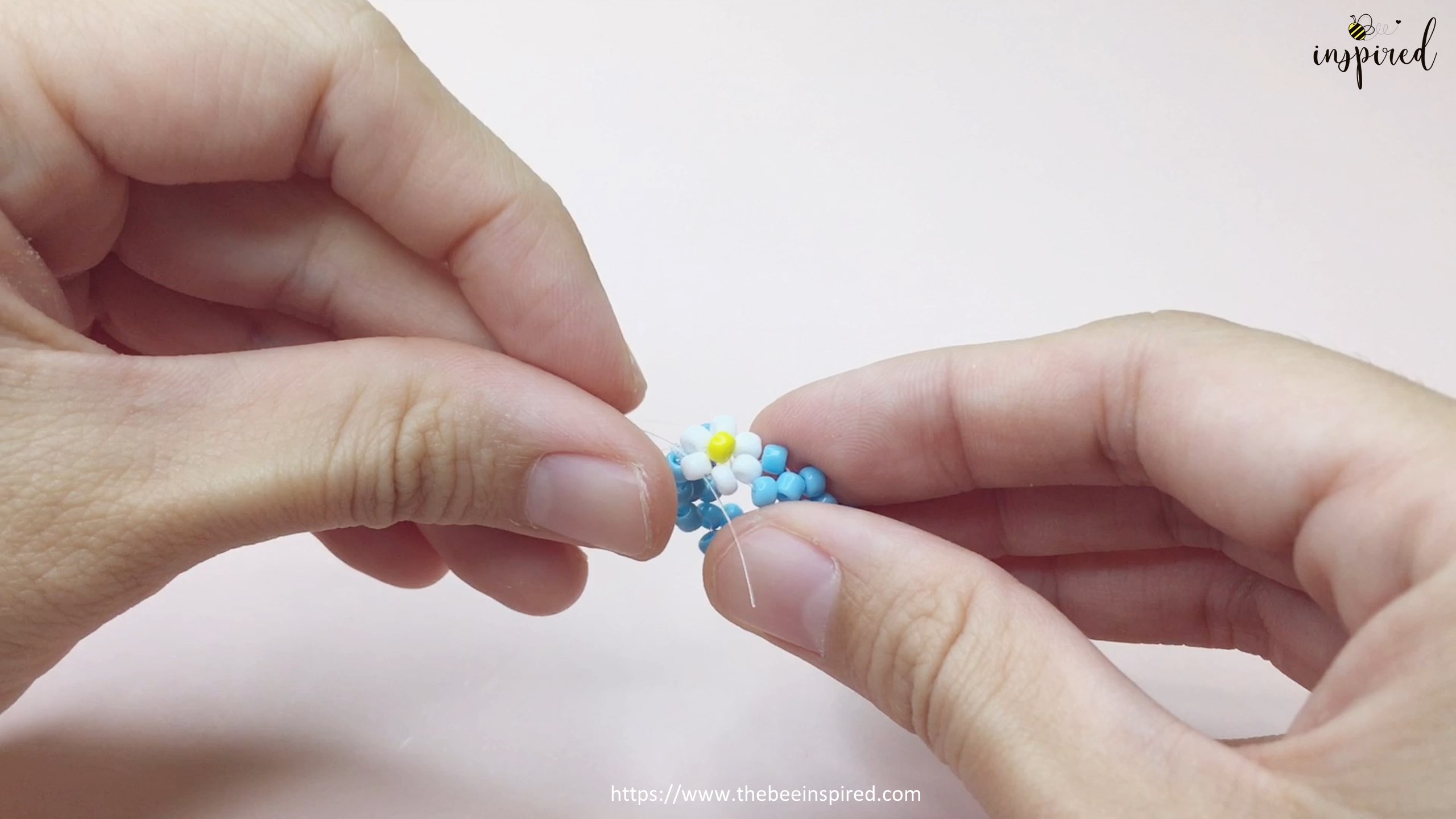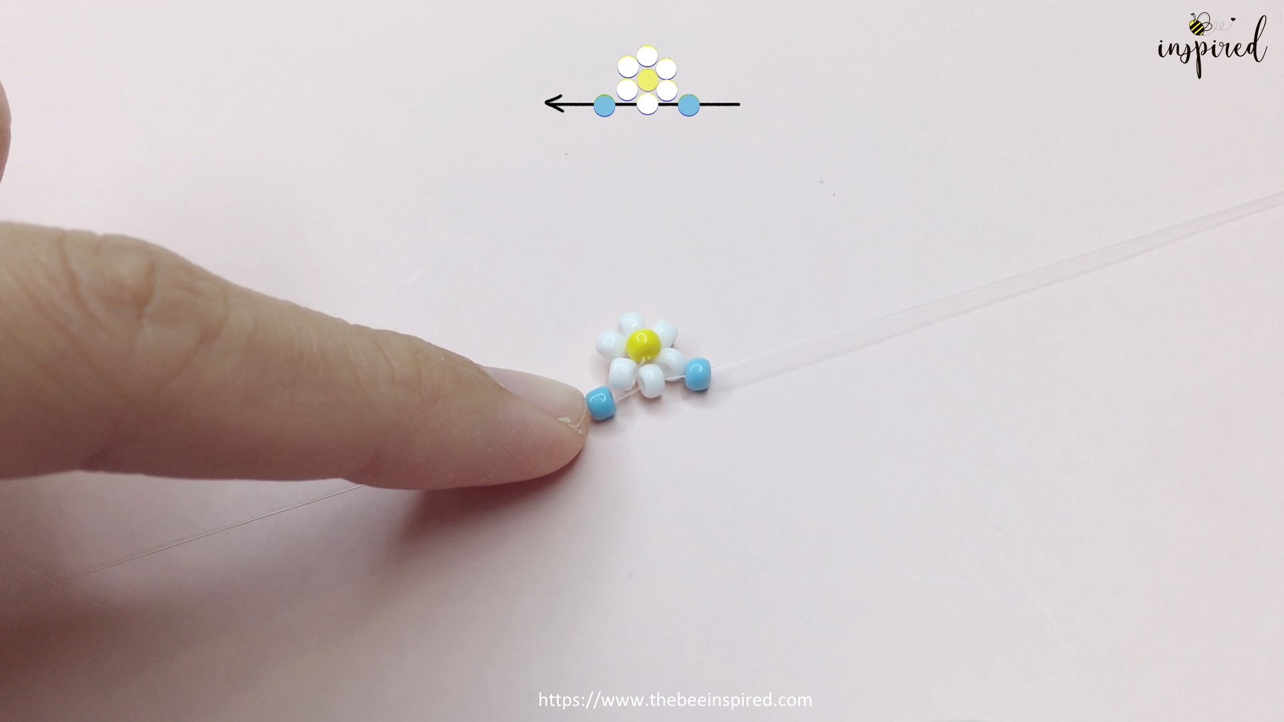 1. ร้อยน้องเดซี่ด้วยลูกปัดสีขาวจำนวน 5 เม็ด