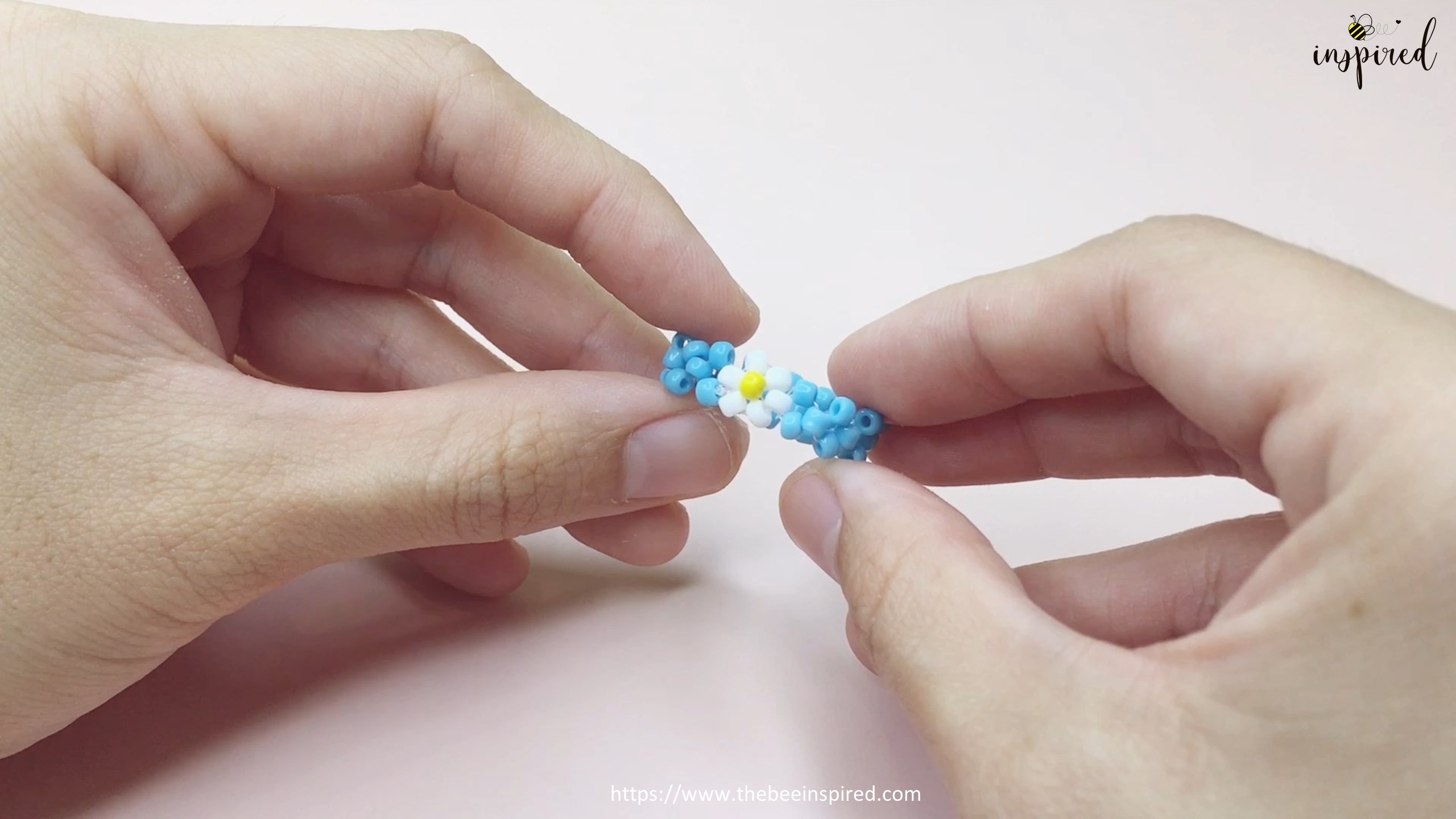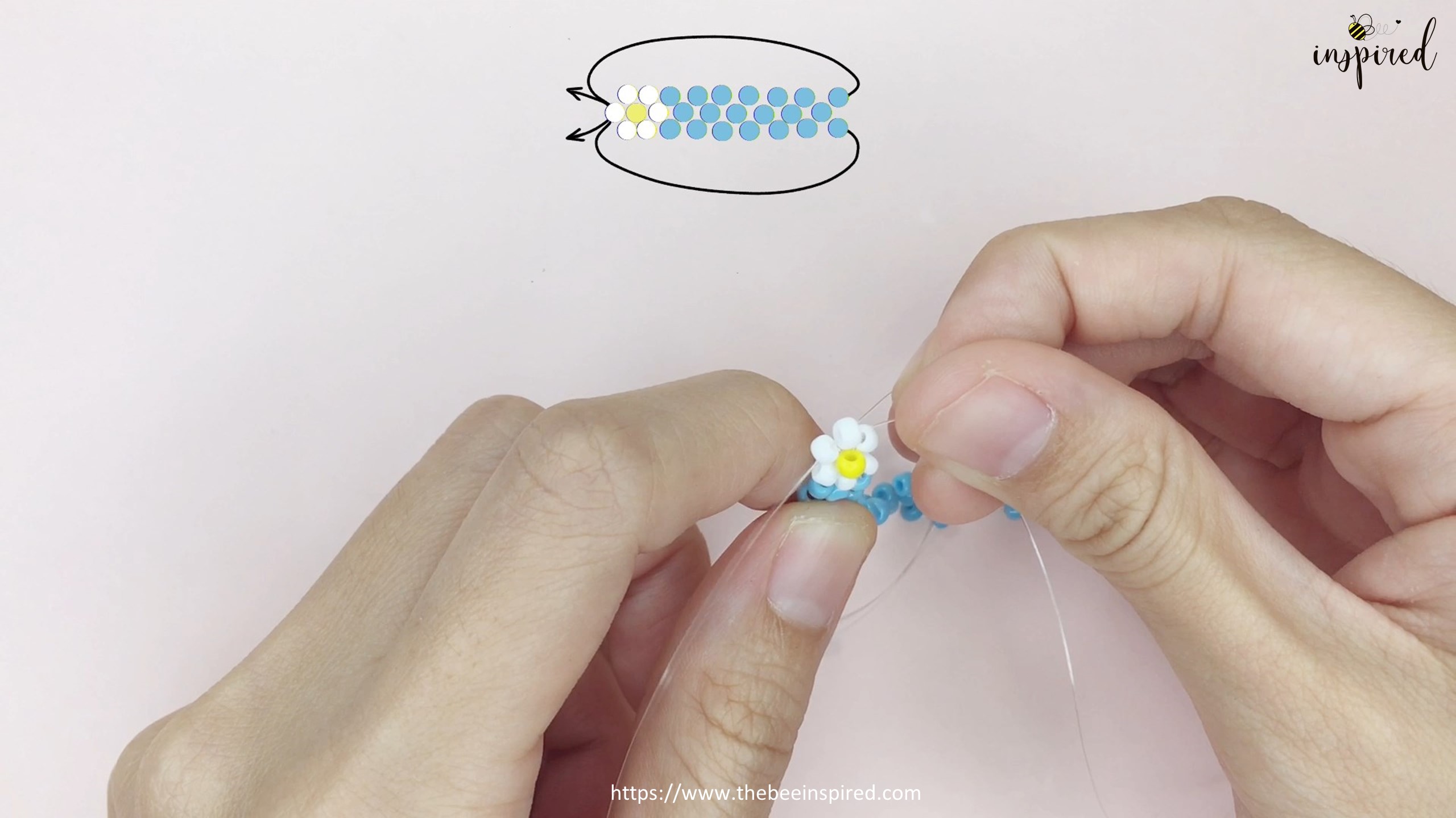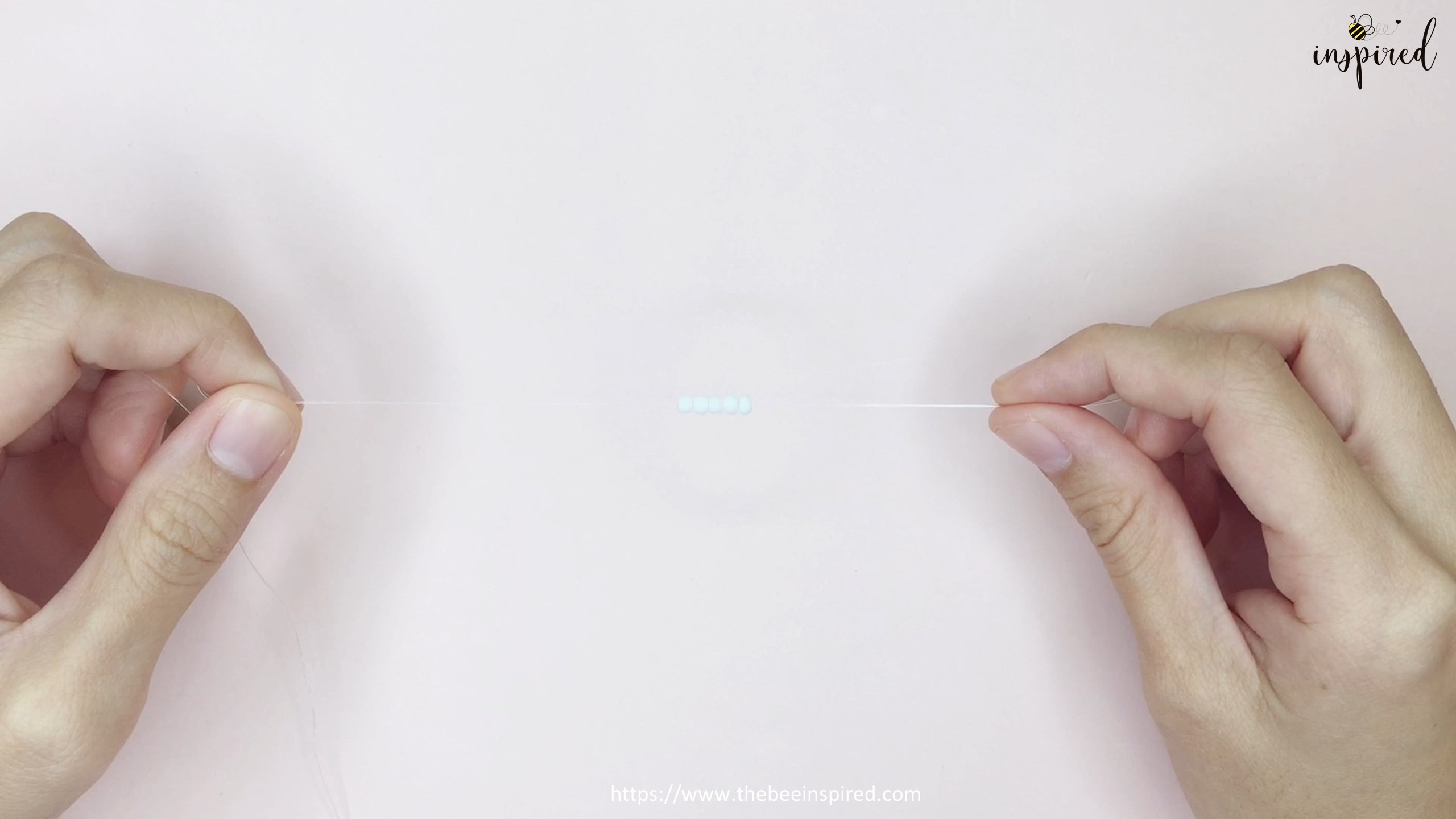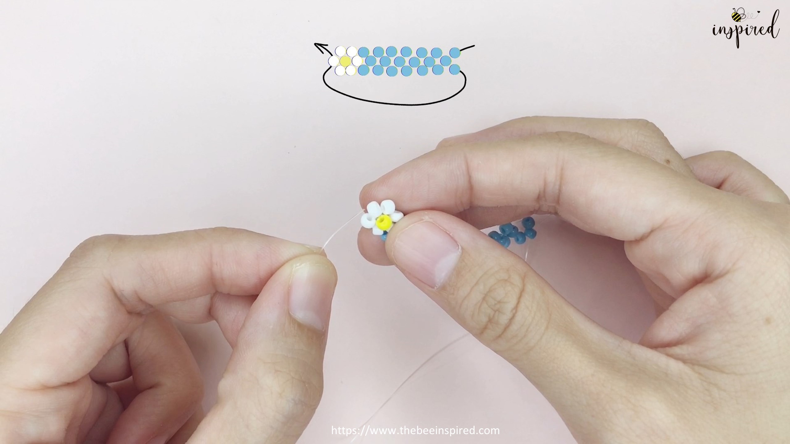 1. ร้อยน้องเดซี่ด้วยลูกปัดสีขาวจำนวน 5 เม็ด