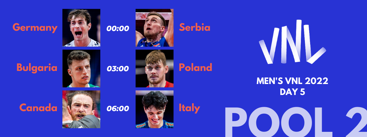 เชียร์สด | Men's VNL 2022 - Day 6 สำหรับผลการแข่งขันในวันที่ 5 เป็นดังนี้ค่ะ วันนี้เริ่มคู่แรกสองทุ่มตรง มาเร็วเคลมเร็วแล
