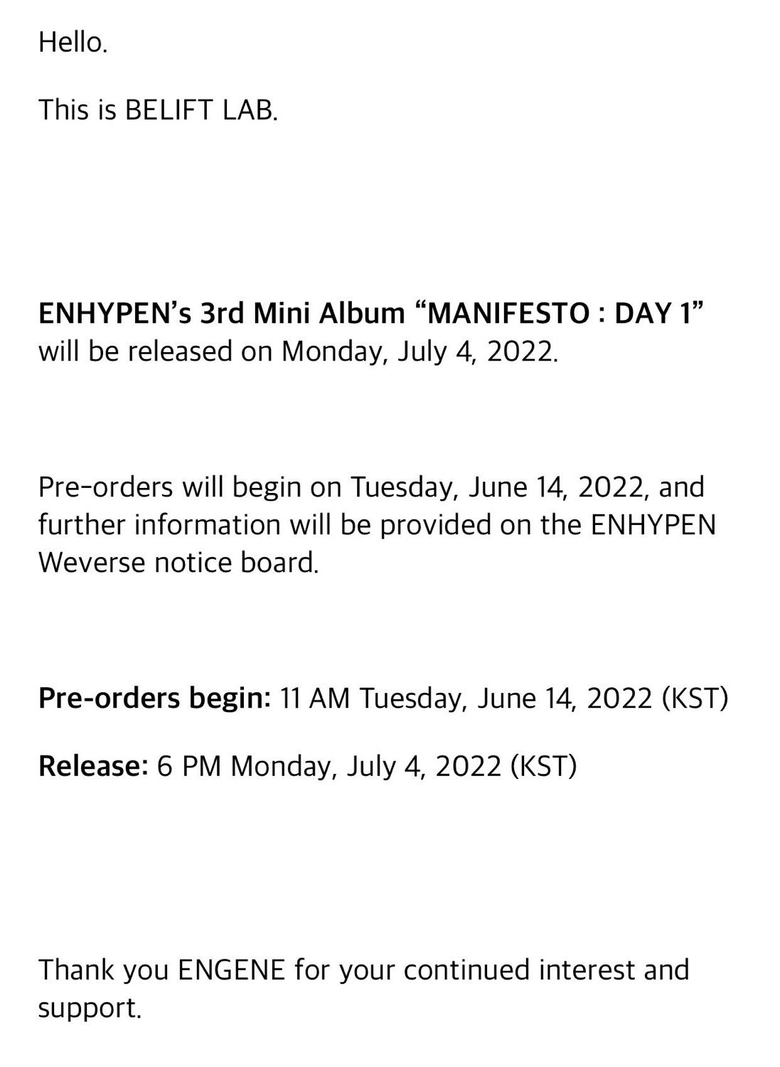 [ENHYPEN (엔하이픈)] ประกาศคัมแบค 4 ก.ค ด้วยมินิอัลบั้ม MANIFESTO : DAY 1 ‘WALK THE LINE’