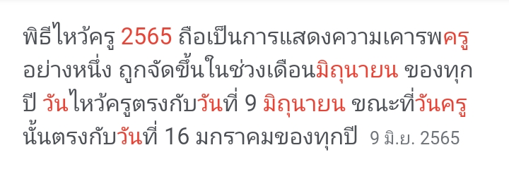 คือ วันนี้วันที่ 16/6/2565 งันไหว้ครูคือวันที่ 16 มิถุนายน แต่เราไม่ได้ไหว้ คืออะไรอ่ะ ไปค้นในกูเกิ้ลมา พบว่ามันมีวันคร฿โครตเยอะ มาดูกัน วันที่ 9 มิถุนายน วันที่16มิถุนายน วันที่16 มกราคม แต่ไม่ได้ไหว้ วอทท????