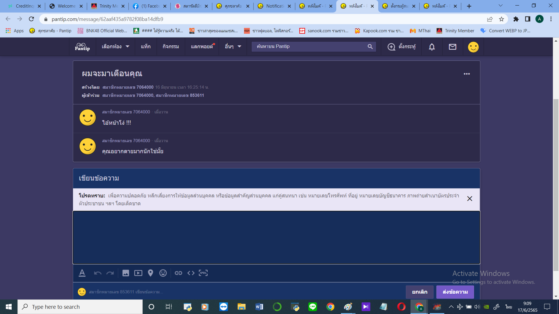 เนื่องจาก สมาชิกหมายเลข 7064000 ได้ส่งข้อความหลังไมค์มาหาผม ถึงขนาดข่มขู่ผมบอกว่า 'คุณอยากตายมากนักใช่มั้ย' ตามที่เห็นสมควรครับ