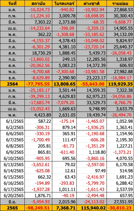 Sinthorn Summary 20/6/2565 : ต่างชาติขายสุทธิ -2,494.48 ลบ.