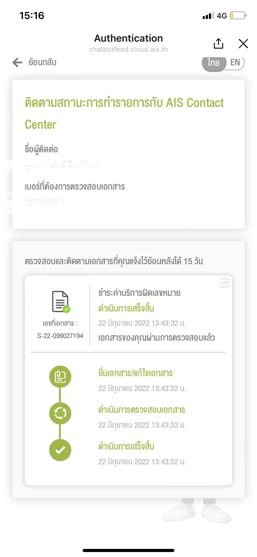 ผมได้ชำระค่าบริการแบบนิติบุคคลของ AIS ไปแล้ว แต่ยังไม่มีใบเสร็จส่งมาให้เลยครับ ไม่สามารถว่าการชำระเงินสำเร็จเรียบร้อยไหม มีส่งอีเมล์พร้อมรายละเอียดไปแล้ว สามารถ