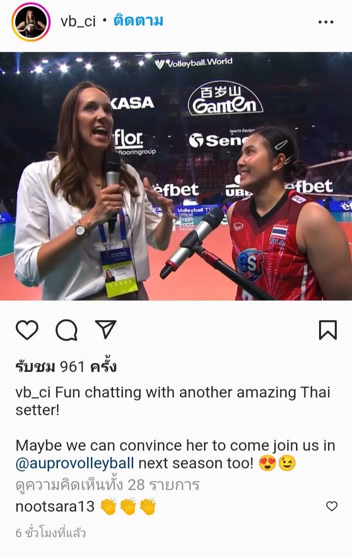 เกียมอยู่ลีคเกายาวๆ เล่นโดดเด่นมาก ทั้ง ตบ ทั้ง เสริฟ ไม่ทราบว่าบินไปซ้อมล่วงหน้าหรือเปล่า ส่วนทีมพรพรรณนั้น … พู่และสอง โมเมสู้ๆๆๆ ขอให้เข้าที่เข้าทางเร็วๆ ปังแน่นวนนน รอชม