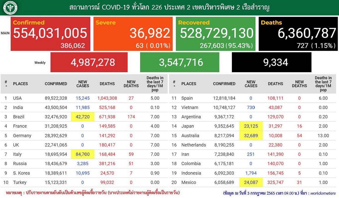 สถานการณ์COVID-19-โคโรน่าไวรัส วันที่ 3/7/2022