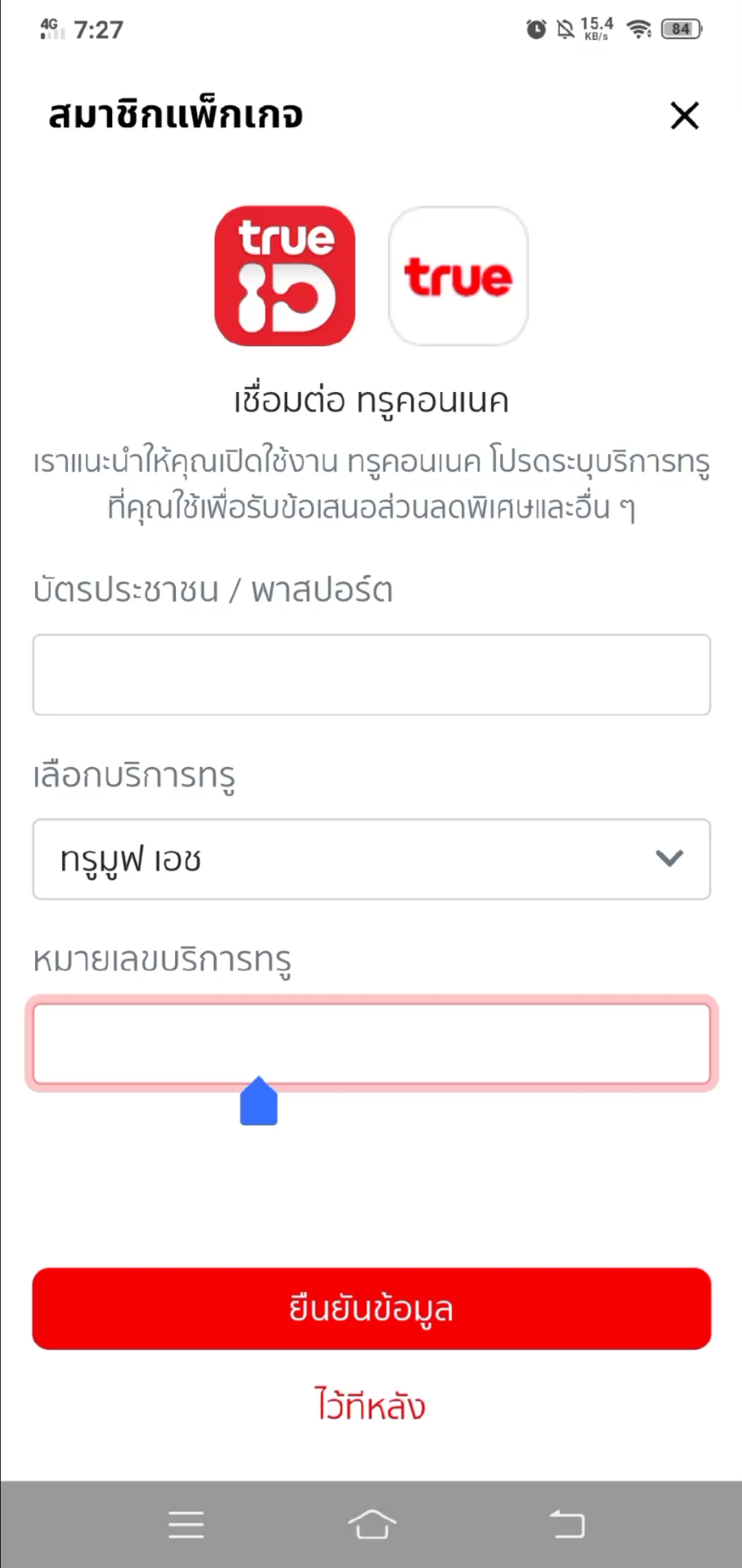 จะรับเเพ็คเเกจ True unlock เเต่ใส่ช่องบนสุดไม่เป็น