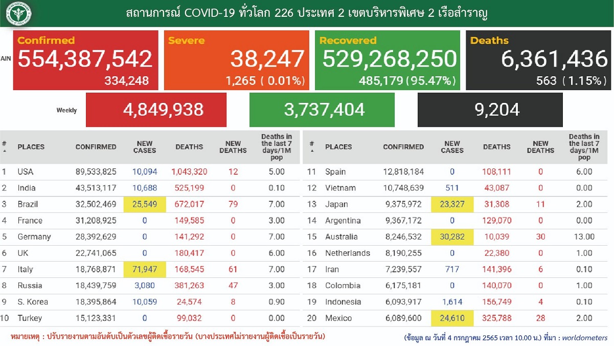 สถานการณ์COVID-19-โคโรน่าไวรัส วันที่ 4/7/2022