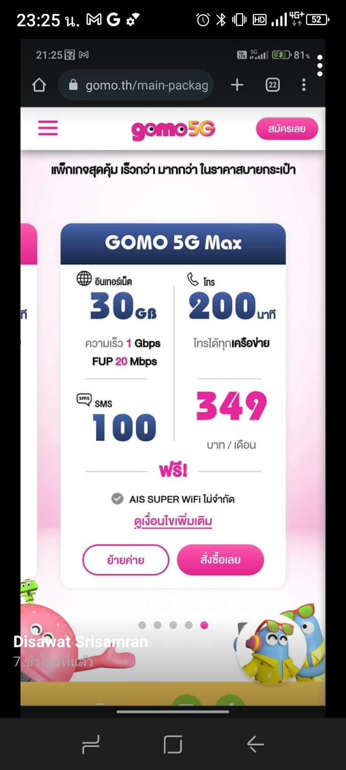 ตอนนี้ใช้แพ็กเกจหนึ่งของ AIS GOMO 199 บาท 30 วัน แต่เน็ตหมดในหนึ่งอาทิตย์ที่ใช้งงมาก เลยซื้อแพ็กเกจเสริม 7 วัน แต่ใช้ได้แค่วันเดียว ทักสอบถามแต่ไม่ได้คำตอบจริงๆเลย มีแต่บอทตอบ เลยคิดว่าจะสมัคร&n