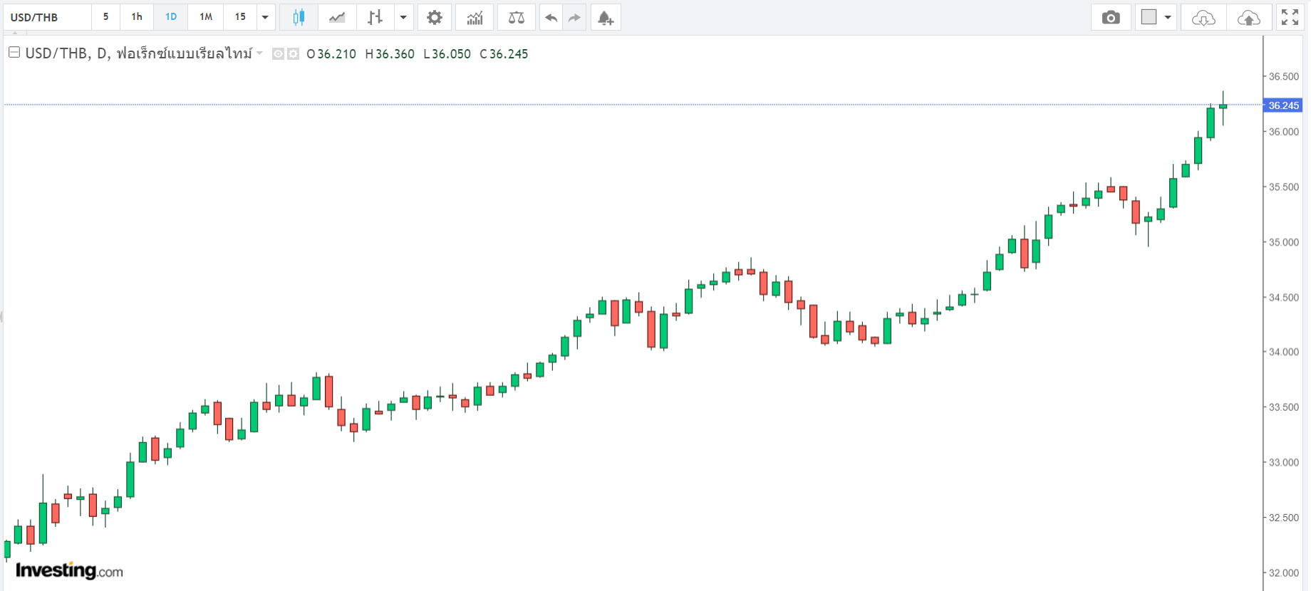 วันนี้บาทอ่อนอีกแล้ว กำลังบิน