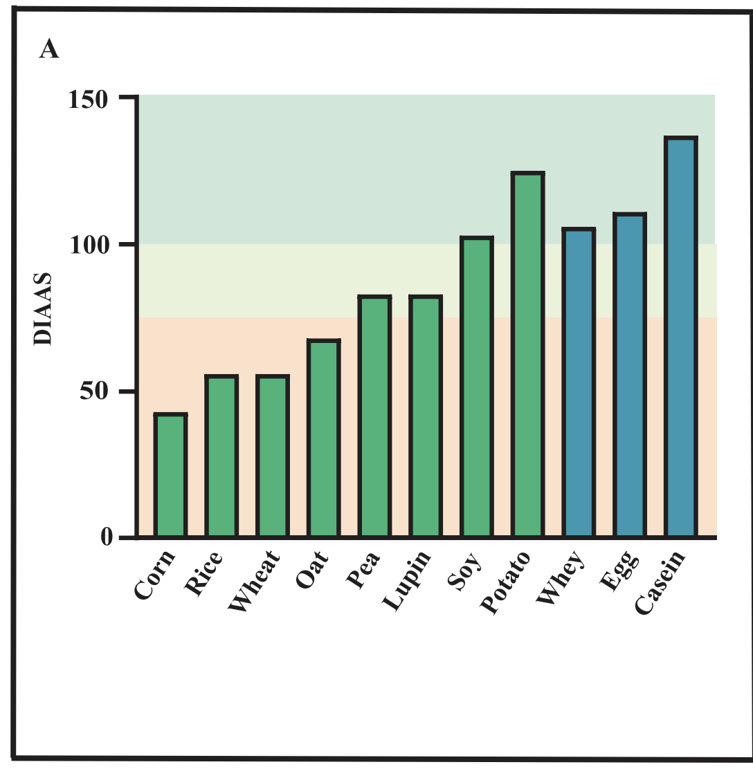 🌏 เมื่อมองในแง่ของคุณภาพโปรตีน ปัจจุบันคุณภาพของโปรตีน องค์การอาหารโลก (FAO) ใช้ DIAAS (Digestible Indispensable Amino Acid Score) เป็นการให้คะแนนการดูดซึมโปรตีน ว่าร่างกายดูดซึมนำไปใช้ได้เท่าไหร่ ซึ่งโปรตีนจากพืชคะแนนมันต่ำกว่าโปรตีนจากผลิตภัณฑ์สัตว์อยู่แล้ว