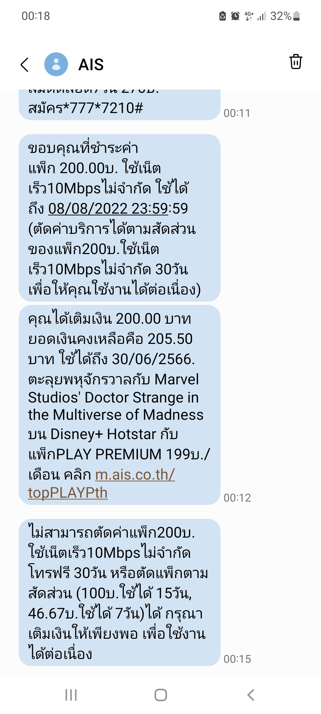 เติมเงินในมือถือ100บาทแล้ว แต่ทำไมมันไม่หักแพ็คเกจรายเดือนคะ (AIS )