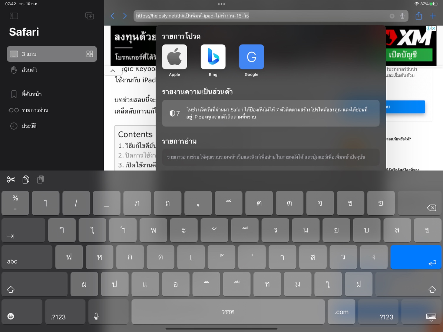 ของเราเป็นรุ่น iPad Pro m1 ค่ะ คีย์บอร์ดเฉพาะภาษาอังกฤษเเยกออกจากกัน ไม่ได้เเยกเเบบเเบ่งครึ่งนะคะ บางตัวมันเเยก บางตัวมันไปทับกันเลย ตอนเเรกโทรไปถาม เค้าบอกให้อัพเดท iOS เเล้วก็รีเซ็ทเครื่อง ลบ
