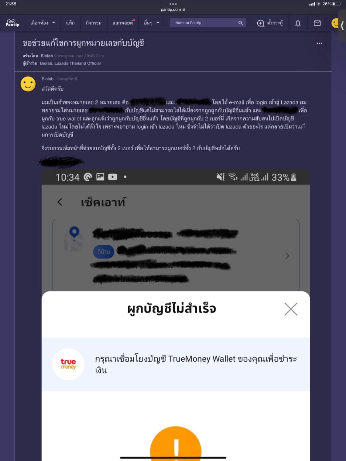 อยากสอบถามครับว่า lazada ช่องทางพันทิพย์