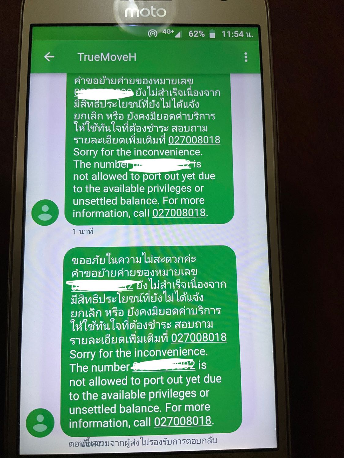 ขอรหัสยัายค่ายทรูไม่ได้ ระบบแจ้งว่าติดสิทธิประโยชน์ แต่เบอร์ที่จะย้ายเป็นซิมเติมเงิน ไม่ติดยอดค้างใดๆทั้งสิ้น รบกวนบริษัททรูรับสายด้วยครับ ติดต่อคอลเซ็นเตอร์ไปร่วมๆ 3 ชั่วโมงแล้ว