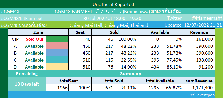 เห็นบ่นกันว่าบัตรราคาแพง ไม่คุ้ม นึกว่าจะกดซื้อแบบชิวๆ พอเปิดปุ๊บเต็มปั๊บ ยิ่งบัตรแพงสุด เต็มไวสุดเลย พี่ๆแฟนคลับ BNK48 & CGM48 ทำงานอะไรหรอครับ บัตร Fanmeet ถึงได้ Sold Out เร็วขนาดนี้