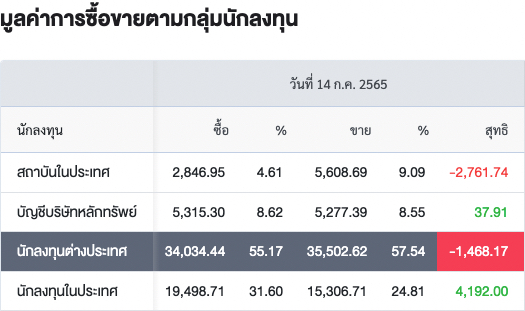 Sinthorn Summary 14/7/2565 : ต่างชาติขายสุทธิ -1,468.17 ลบ.