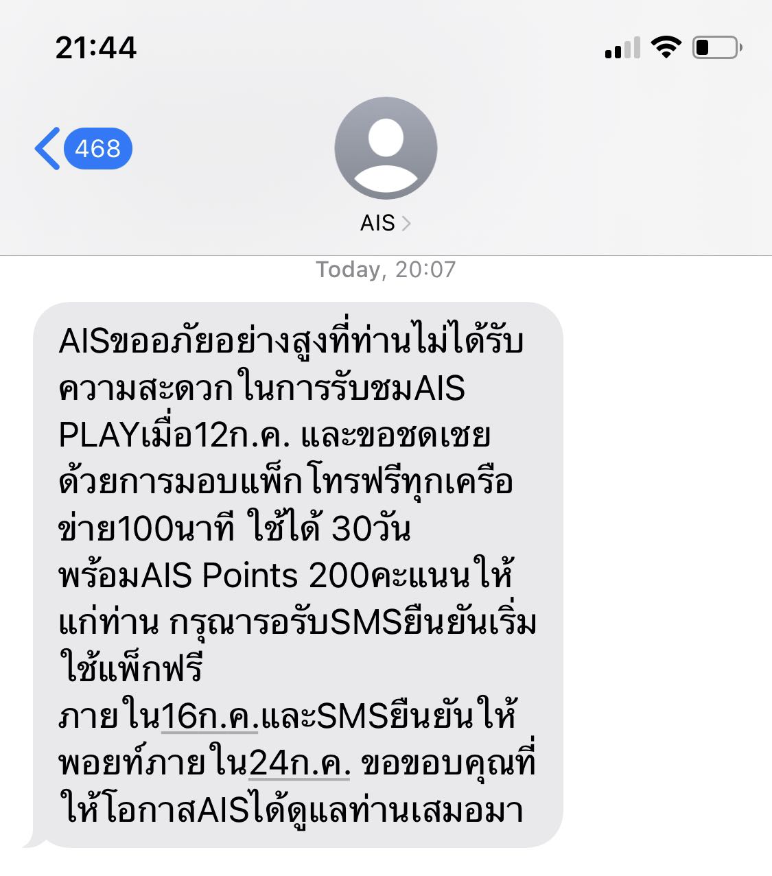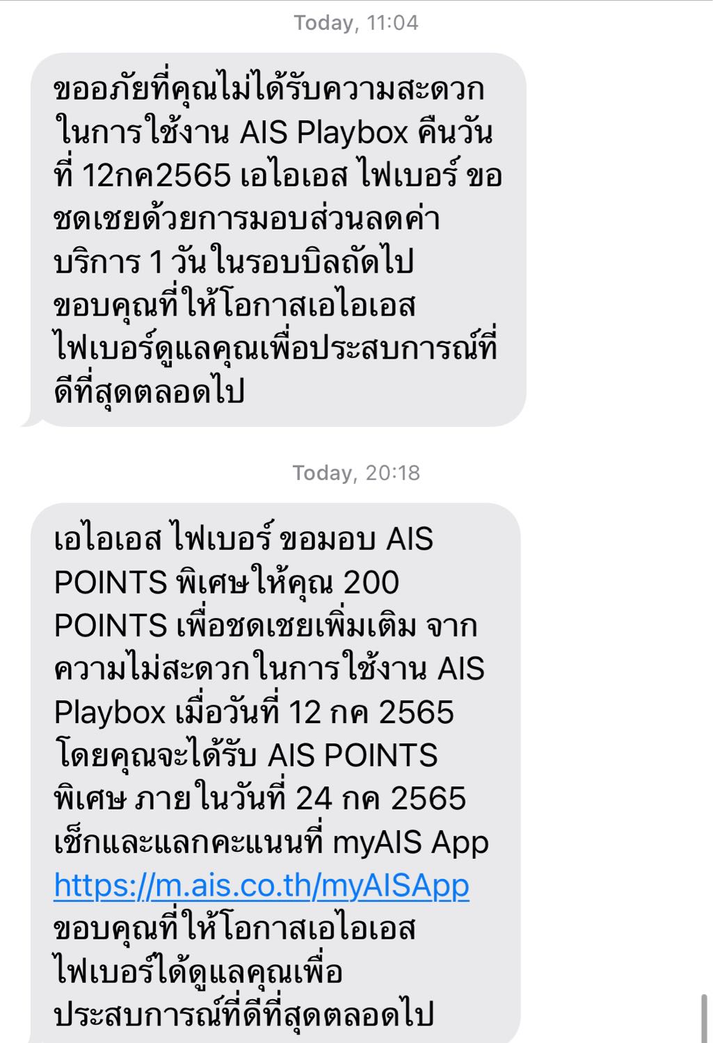 ได้รับข้อความชดเชย The Match จาก AIS & AIS Fiber แล้วครับ