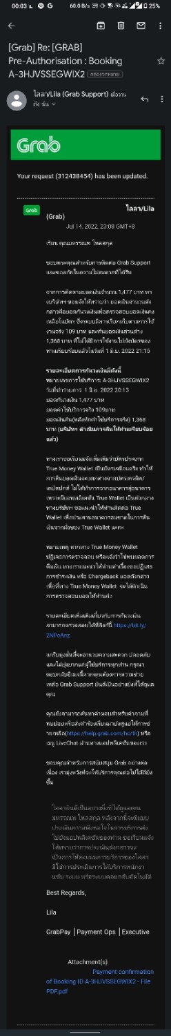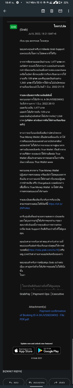 โดนหักเงินจากgrabผ่านไป45วันแบ้วยังไม่ได้เวินคืนพอติดต่อศูนย์ข่วยเหลือก็บอกให้รอ3-5วันตลอดผ่าน