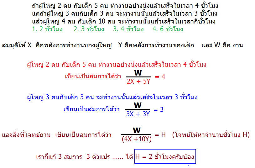 เมื่อแก้สมการแล้วคำตอบ H จะได้ 2 ชั่วโมงเสมอ