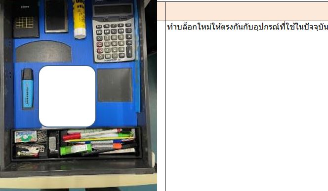 เมื่อมีการปรับ stationery ภายในลิ้นชัก มันจะไม่ตรงกันกับบล็อกสภาพเดิม