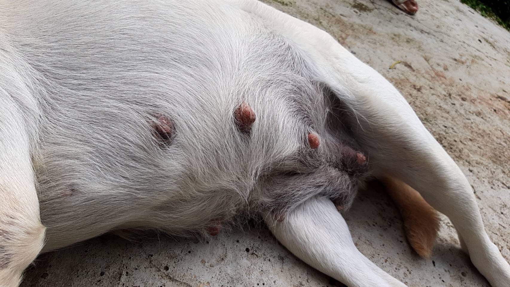 พึ่งสังเกตุอาการของหมาที่บ้านตัวเมีย ลักษณะตามภาพครับ คือว่า ลักษณะของนมน้องหมามันเเปลก ๆ ไป คือ อยากสอบถามผู้รู้ว่าแบบนี้คือหมาเกิดความผิดปกติใช่ไหมครับ พวกเป็นมะเร็ง สอบถามแม่ที่เป็นคนอาบน้ำให้บอกว่าพอไปจับก็ไม่แสดงอาการว่าเจ็บแต่อย่างใด หรือว่า จะท้อง แต่ก็ฉีดยาคุมให้อยู่นะครับ