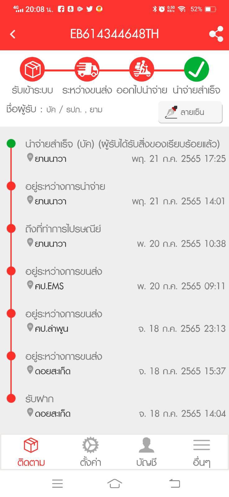 EB614344648TH ขึ้นสถานะว่าจัดส่งแล้วแต่ไม่ได้รับของ