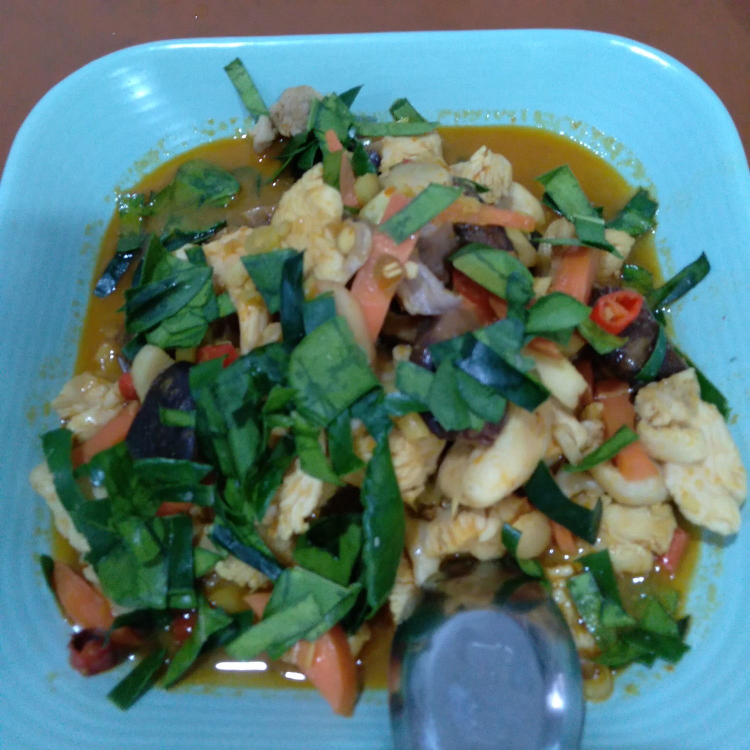 - ผัดพริกแกง หมู แครอท กุ้งสด เห็ดหอม