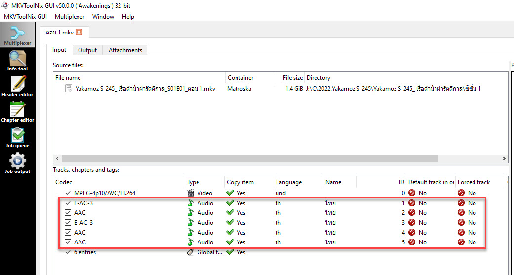 mkvmerge รบกวนช่วยดูโค้ดให้หน่อย ครับ