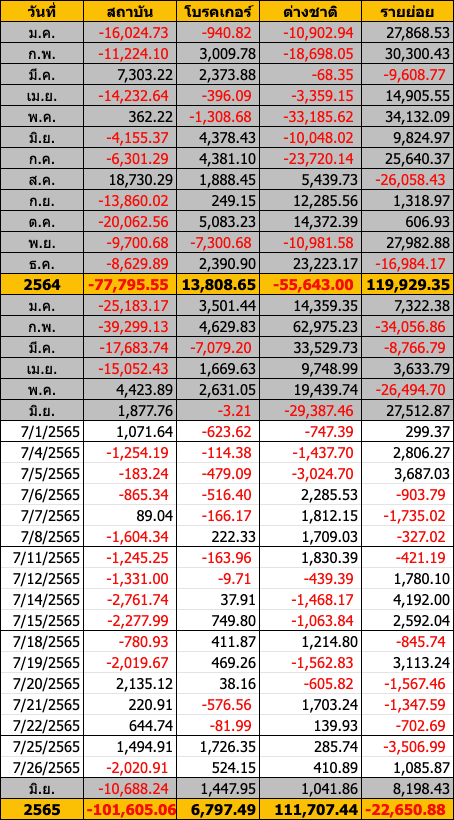 Sinthorn Summary 26/7/2565 : ต่างชาติซื้อสุทธิ 410.89 ลบ.