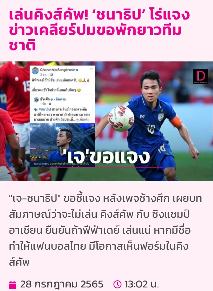 Breaking! ชนาธิปเปลี่ยนใจขอแจม AFF ปลายปี