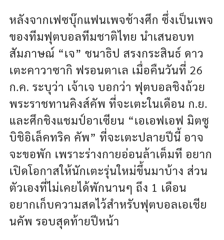 ชุดเมื่อวานที่เจอตรินิแดดจะเจอทีมในอาเซียนไหวมั้ยครับ ไม่ต้องเรียกชนาธิปและศุภโชค(ถ้ายังอยู่ซับโปโรต่อ) ให้ได้ปรับตัวกับทีมต่อเพราะไม่ใช่ FIFA DAY ด้วยจบบอลโลกแล้ว แม้ยังอยู่ในช่วงปรีซีซั่นแต่สโมสรมีส