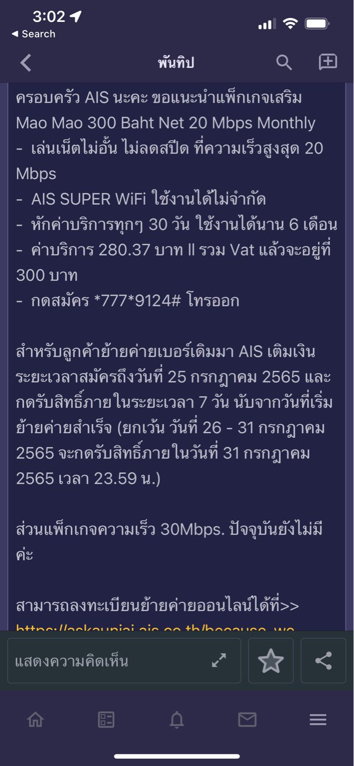ขอคำแนะนำแพ๊คเกจเน๊ตครับอยากจะย้ายค่ายจากais