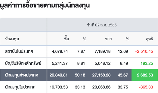 Sinthorn Summary 2/7/2565 : ต่างชาติซื้อสุทธิ 2,682.53 ลบ.