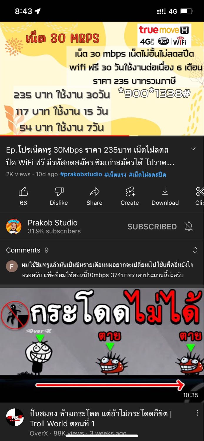 ผมได้โปรนี้มาเมื่อปี62 เป็นโปรเน็ตเติมเงิน 200บาทถ้วน จะใช้เน็ตได้เร็วสูงสุด 10mbps และโทรฟรีครั้งละ15นาที ซึ่งสำหรับผมมันเพียงพอมาก เร็วและไม่สดุด เพระส่วนตัวจะดูหนัง และ ดูยูป (ที่บ้านไม่มีwifi) ค่
