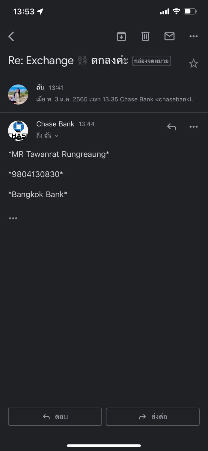 สอบถามหน่อยค่ะ คือแฟนเราโอนเงินมาจากต่างประเทศ แล้วมีไลน์ ของต่างประเทศมันเป็นธนาคาร ให้เราโอนไป5000 สหรัฐฯ ( แสนกว่าบาทไทย) แล้วเงินที่แฟนเราโอนมาจะเขินบัญชี(ไ