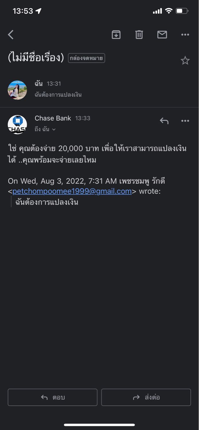 พี่ชายเราโอนเงินมาให้จากลอนดอนค่ะ แต่มีข้อความส่งมาว่าต้องชำระค่าแปลงสกุลเงิน 20,000 บาทไทย