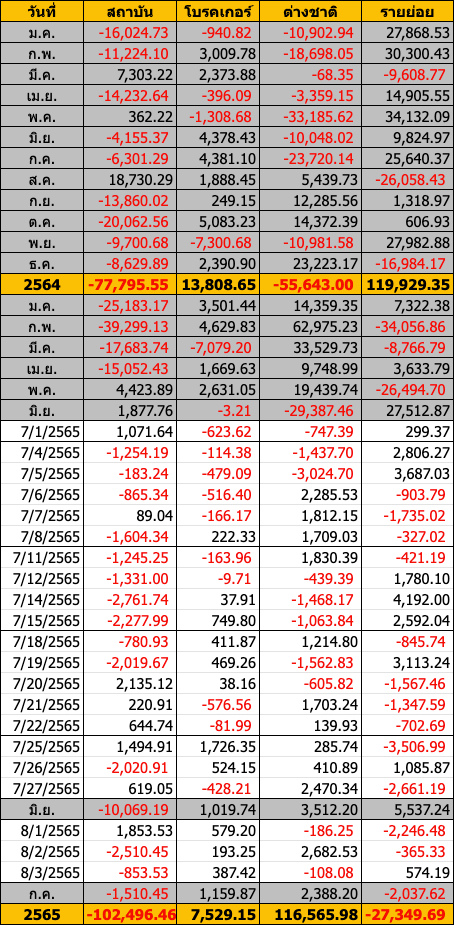 Sinthorn Summary 3/8/2565 : ต่างชาติขายสุทธิ -108.08 ลบ.