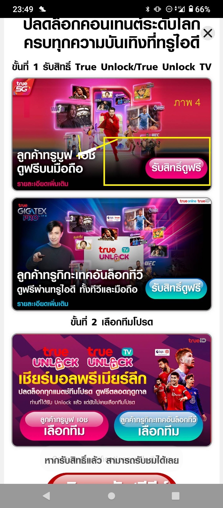 ใช้ เนตบ้าน true ใช้สิทดูพรีเมียลีค ฟรี 1 ทีม จาก true unlock ตอนใช้สิท เปิด ซิม ทรู ปิด ไวไฟ บ้าน