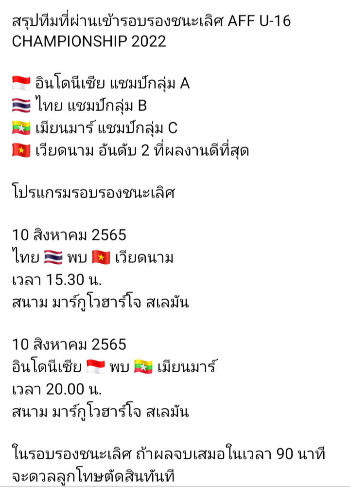 l AFF-U 16 BOYS l SEMI FINALS เจอ 'เหงียน' ยิงให้ยับ 10 สิงหาคม มีนัดกัน 15.30 น. !!!