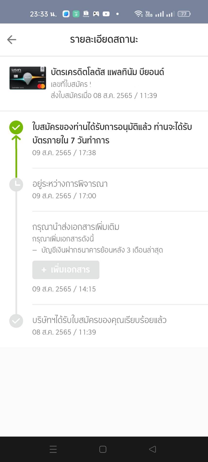 บัตรเครดิตที่สมัครผ่านแอพ uchoose อนุมัติทั้ง 4 บัตร