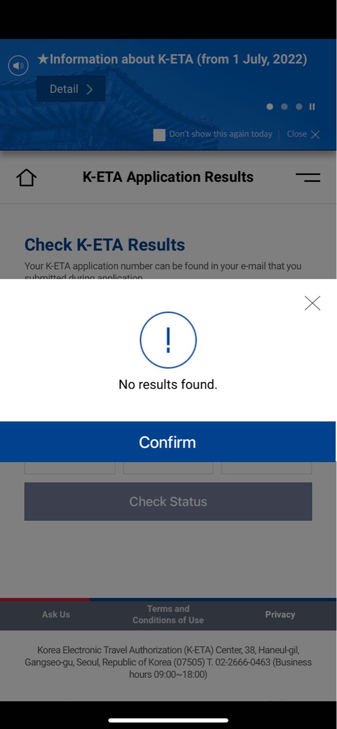 ลงทะเบียน K-ETA เช็คผลลัพธ์ไม่ได้