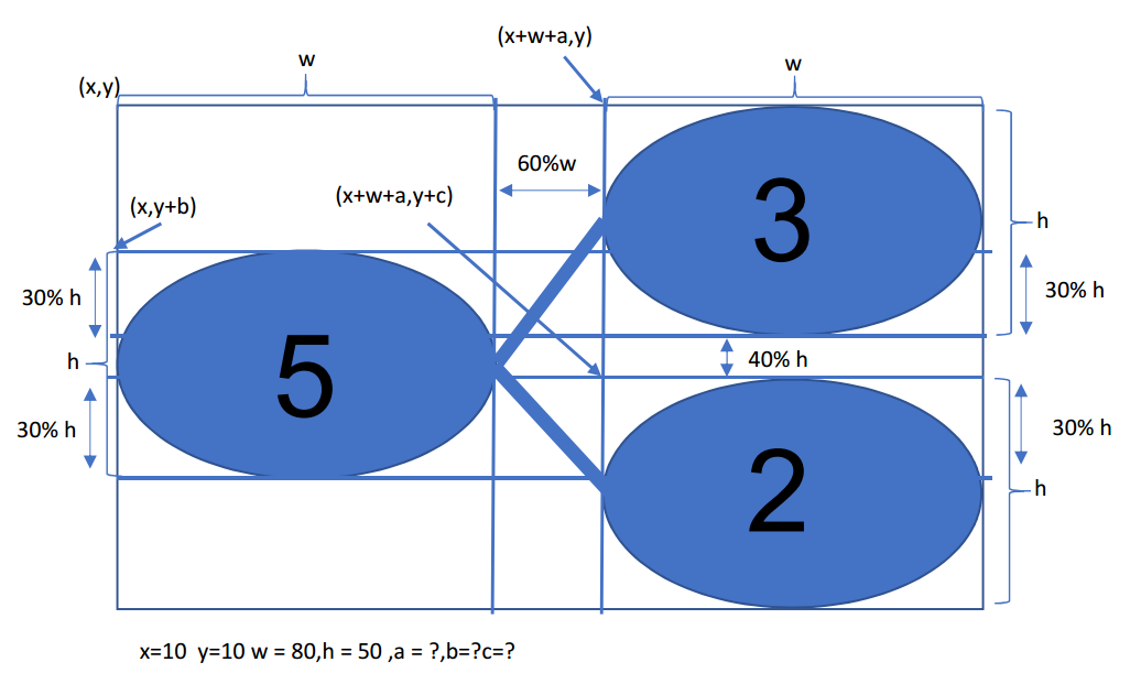 คือ อยากจะวาดวงกลม ที่ทั้ง 3 จะมีความสูง h ความกว้าง w โดยเริ่มจาก จุด เริ่ม เป็น x,y