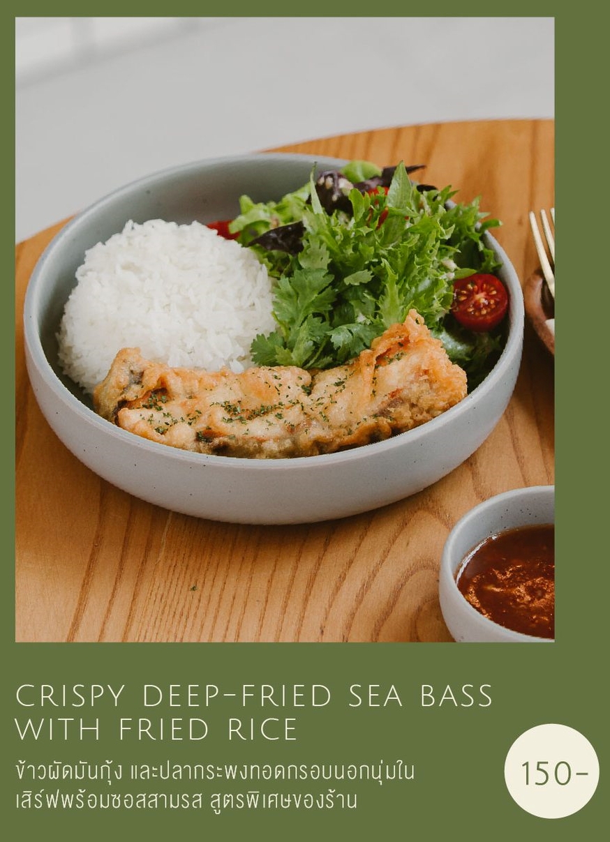 🍽️เมนูที่ 6 ข้าวผัดมันกุ้ง และปลากระพงทอดกรอบนอกนุ่มใน เสิร์ฟพร้อมซอสสามรส สูตรพิเศษของทางร้าน - Crispy Deep-Fried Sea Bass with Fried Rice🍽️